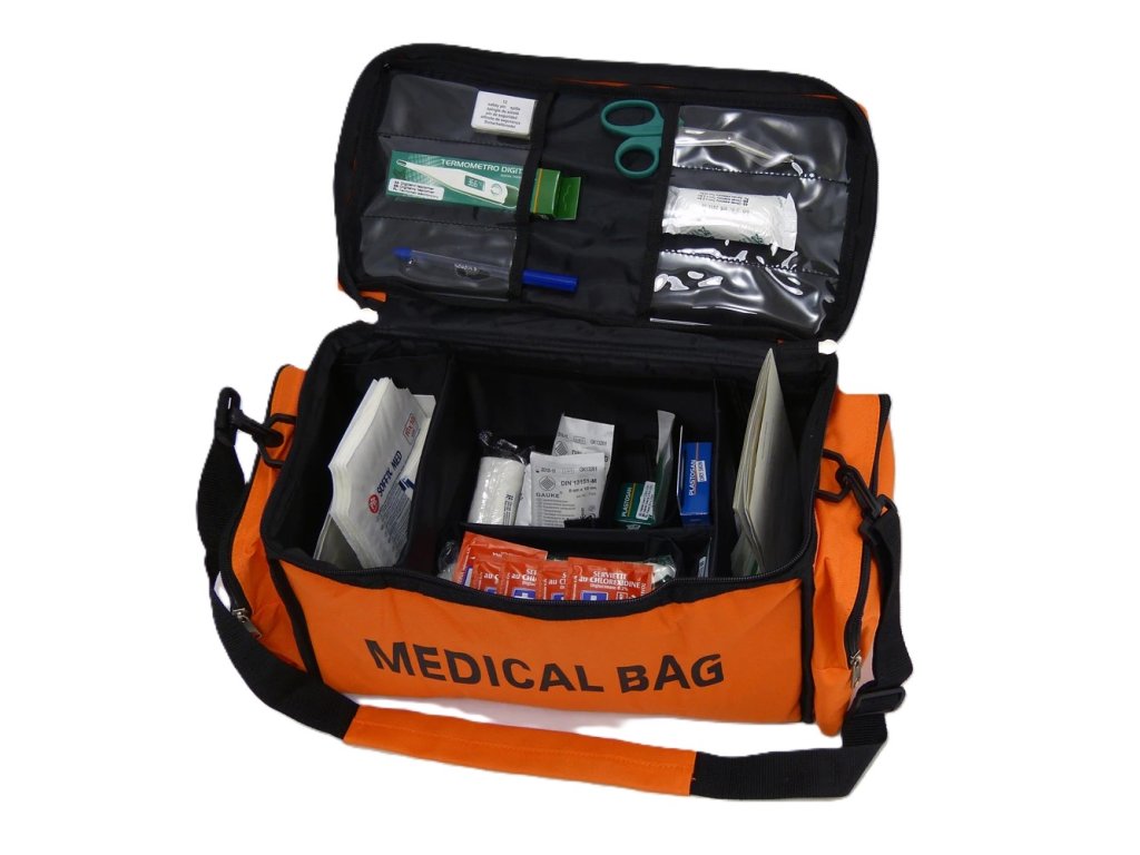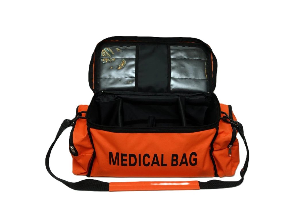 Brašna první pomoci je vhodná především pro sportovní kluby a areály, cestovní kanceláře, rekreační střediska, školy v přírodě a podobně. Brašna MEDICAL BAG je vyrobena z vodoodpudivého nylonového materiálu, je vybavena dvěma bočními kapsami na zip a popruhem k nošení přes rameno, vnitřní prostor brašny lze variabilně rozdělit pomocí přepážek a kapes na suchý zip. Do víka brašny jsou všity průhledné plastové kapsy.