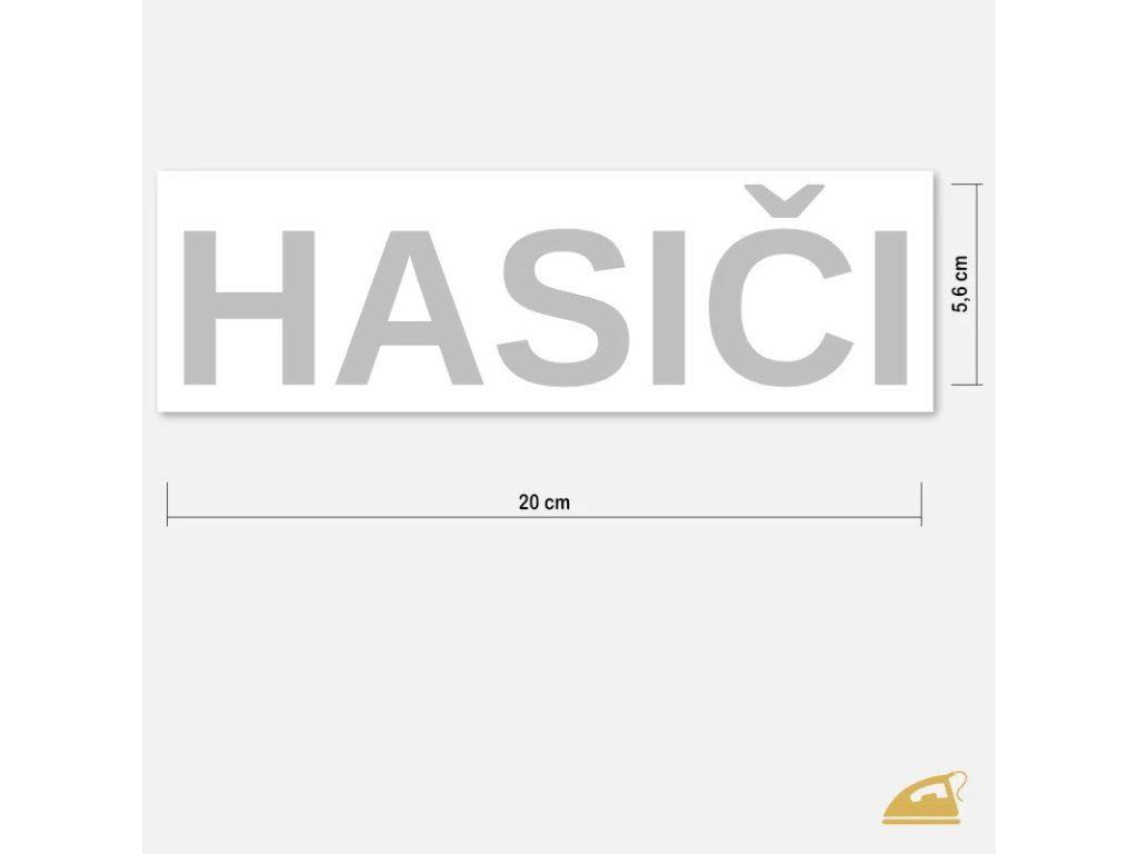 Velká reflexní nažehlovačka s nápisem HASIČI o rozměru 20 × 5,6 cm. Ideální pro umístění na záda pracovních oděvů profesionálních i dobrovolných hasičů.