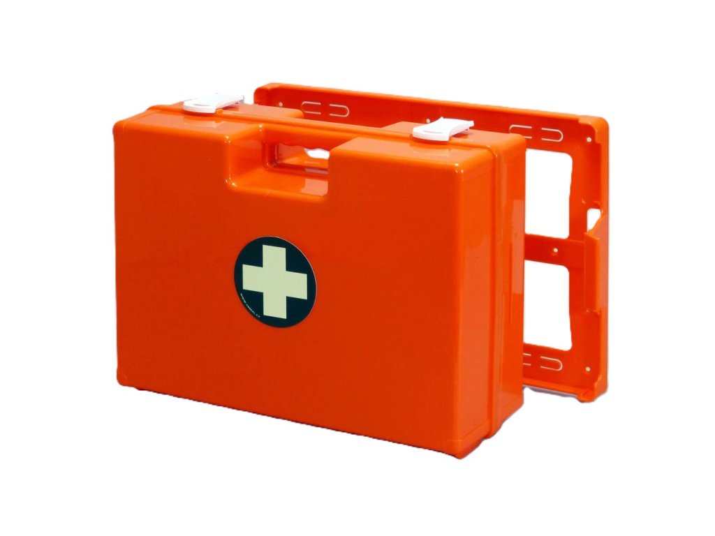Plastový kufr první pomoci je vyroben z ABS plastu odolného vůči nárazům. Součástí kufru KP 5 je i stěnový držák se šrouby, který lze připevnit pevně ke zdi - na tento držák lze kufr pevně připevnit a stává se z něj klasická lékárnička. V případě potřeby lze kufr KP 5 jednoduše ze stěnového držáku vyjmout a přenést přímo na místo úrazu.