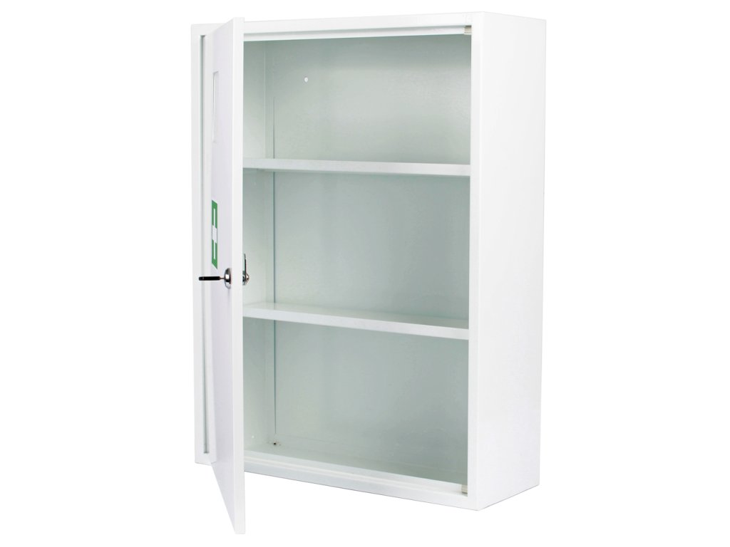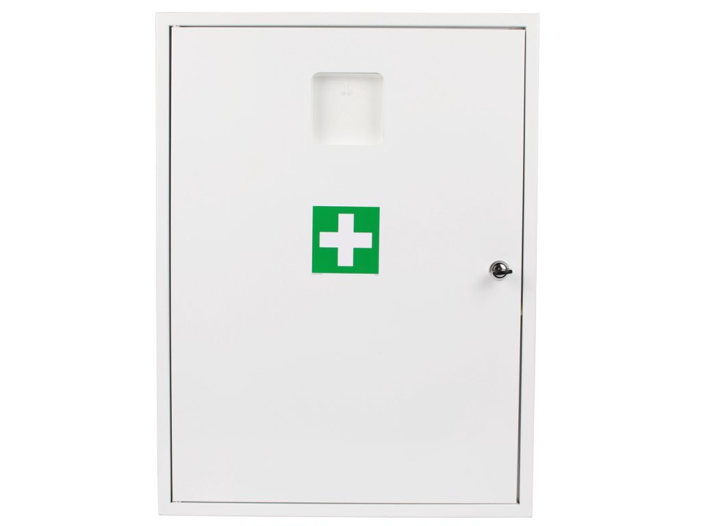 Lékárnička pro použití v průmyslových i administrativních prostorách. Materiálem je pozinkovaný plech a na povrchu je polyuretanový lak.