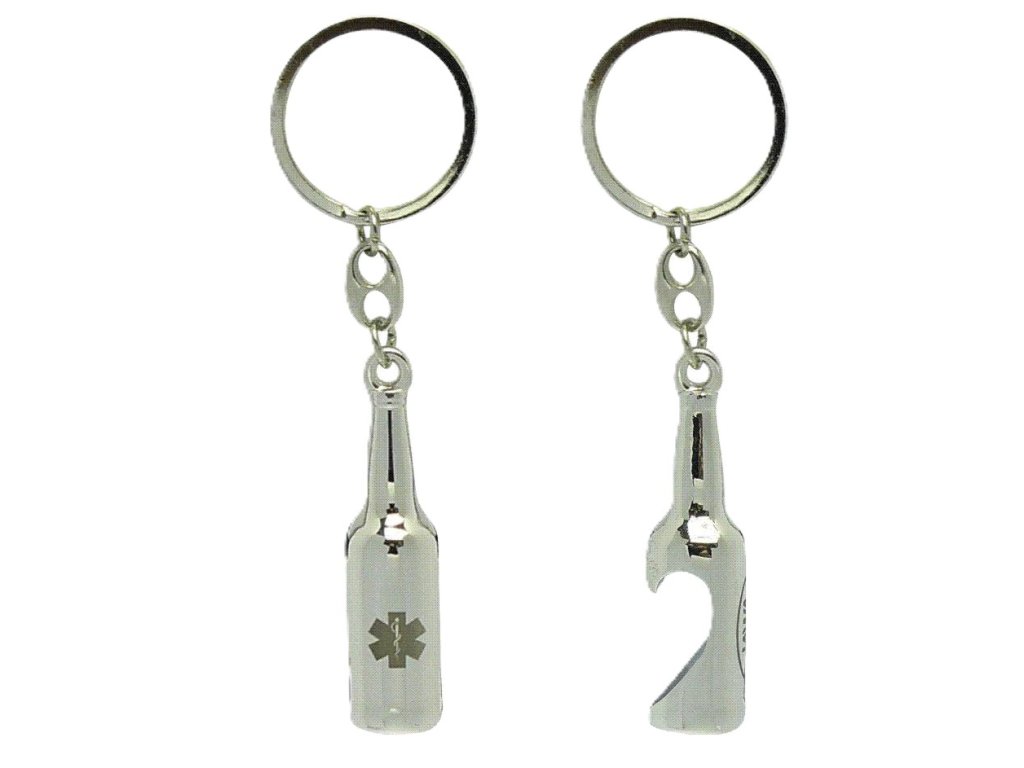 Kovový přívěsek na klíče s otvírákem na láhve.