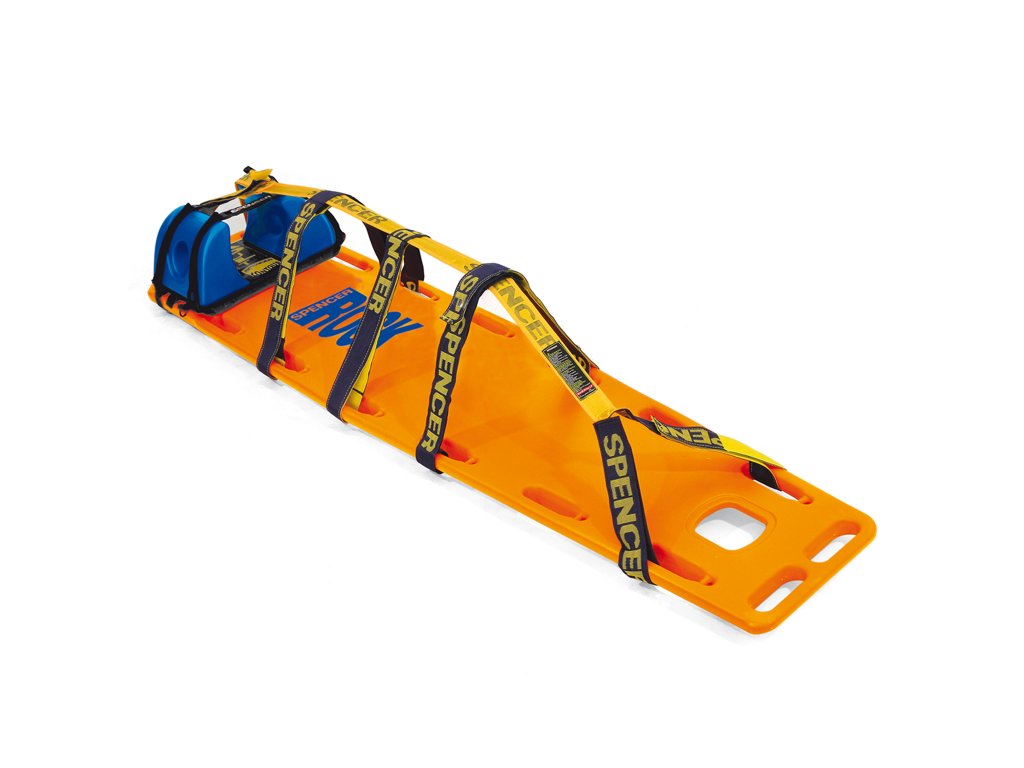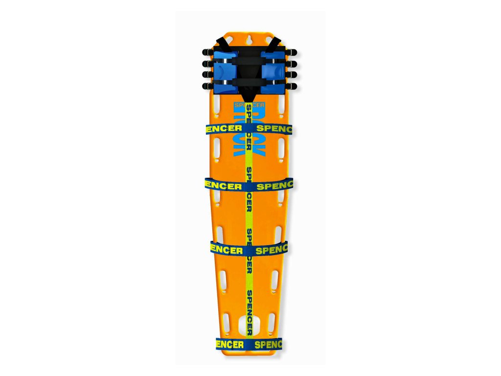 Páteřová deska Spencer ROCK PIN patří mezi nejoblíbenější transportní prostředky na světě. Je po obvodu vybavena tzv. PINy, které umožňují použití rychloupínacích popruhů s karabinami. Je plovoucí na vodní hladině. Barva páteřové desky je žlutá nebo oranžová (podle skladové dostupnosti), fixátor hlavy je dodáván (podle skladové dostupnosti) v oranžové nebo žluté barvě.