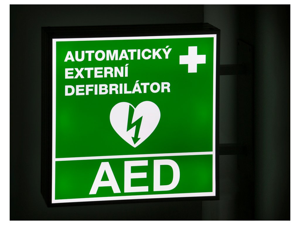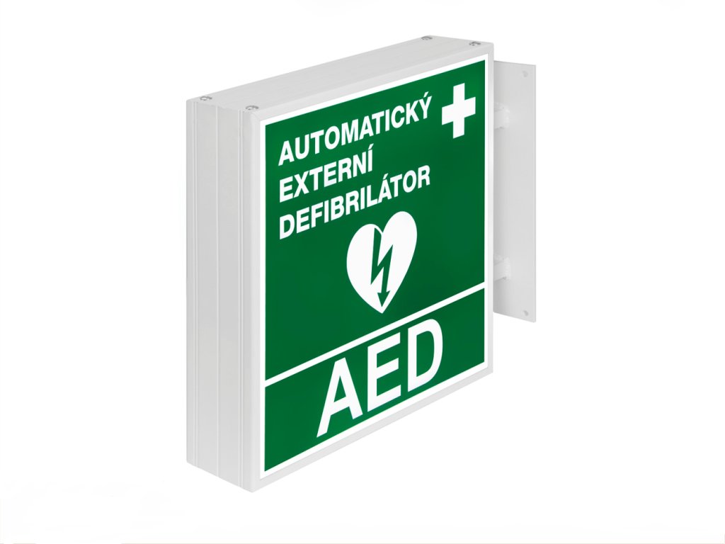 Univerzální světelné označení umístění AED (pro exteriéry).